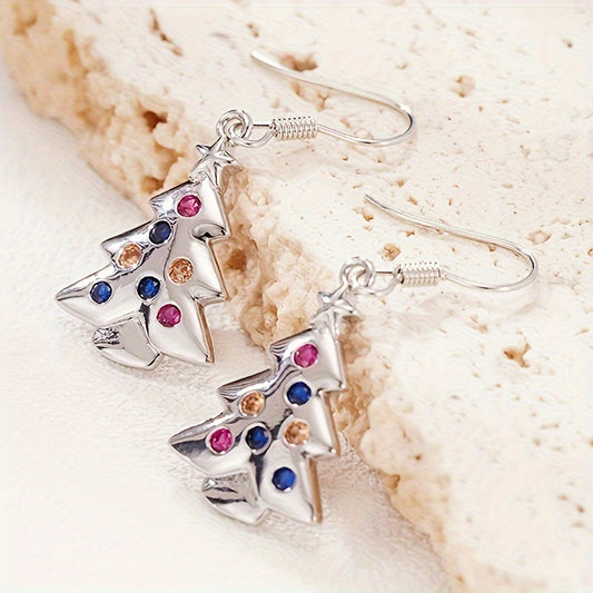 Elegant Christmas Tree Drop & Dangle Earrings for Women, Colorful Synthetic Cubic Zirconia, Cute Holiday Themed Copper Hook Earrings with Nickel-Free Plating, Ideal for Daily and Party Occasions - 1 Pair
