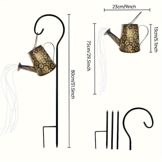 Solar Watering-Can Cascading White & Coloured String Fairy Lights